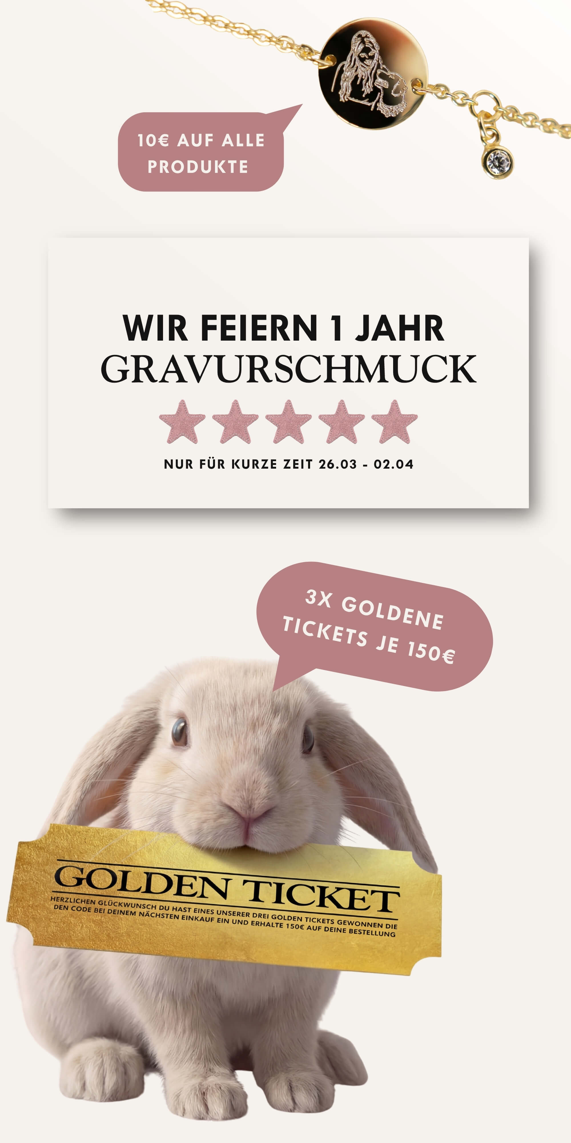 Wenn du unsicher bist, bestelle den Schmuck zunächst ohne Gravur. So kannst du ihn in Ruhe ansehen und, falls er dir nicht gefällt, an uns zurücksenden. Gefällt er dir, kannst du ihn anschließend erneut bestellen – diesmal mit Gravur.