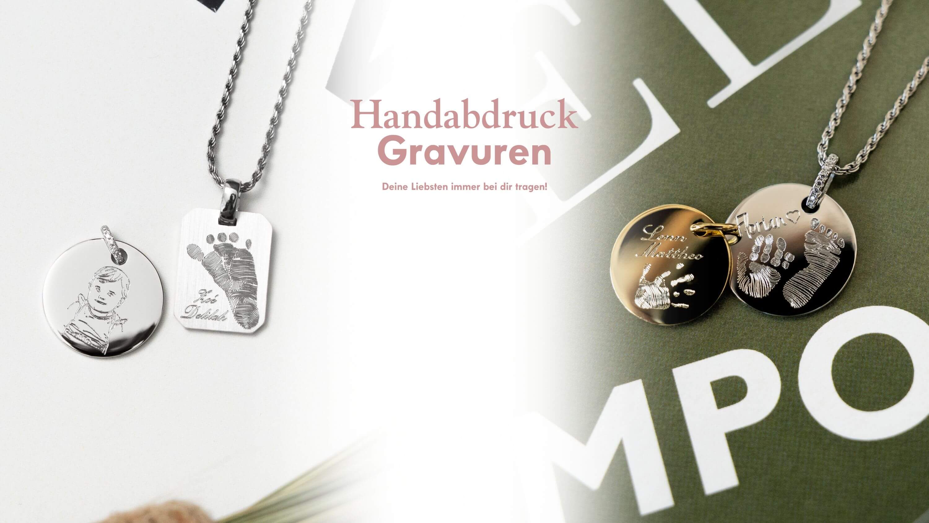 Unsere Halsketten mit Gravur und Armbänder mit Gravur sind nicht nur stilvolle Accessoires, sondern tragen eine persönliche Bedeutung. Ob Namenskette für Damen, Gravurarmband für Herren oder eine Taufkette mit Gravur – wir bieten eine große Auswahl an personalisierten Schmuckstücken. Dank modernster Gravurtechnik kannst du deine Initialen, ein Datum oder einen Fingerabdruck stilvoll verewigen.