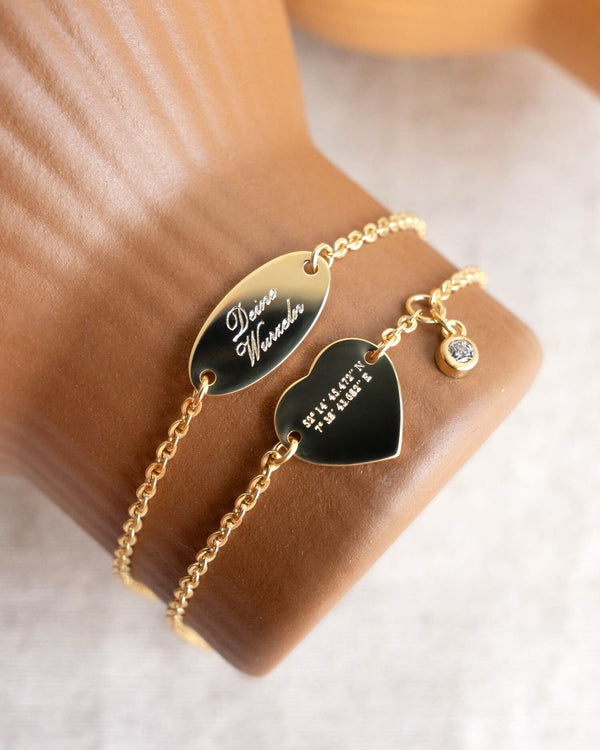 Dezent graviert auf dein Schmuckstück aus 925 Silber oder echtem Gold.
