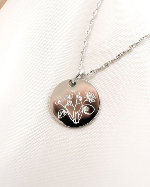 Wähle die passende Geburtsblume und wir gravieren sie fein und präzise auf dein Schmuckstück aus 925 Silber oder echtem Gold.