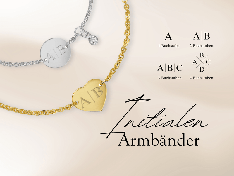 Our engraving bracelets for women - initials - 925 silver 18k gold-plated with engraving bracelet are perfect for anyone who wants to capture a special memory. Engrave the initials of your family or loved one - whether as a couple with two letters or as a family with up to four letters. An individual gift or a unique piece of jewelry for yourself. These pieces of jewelry are available in different designs: engraved bracelet, bracelet with engraving, personalized bracelet or identity bracelet.