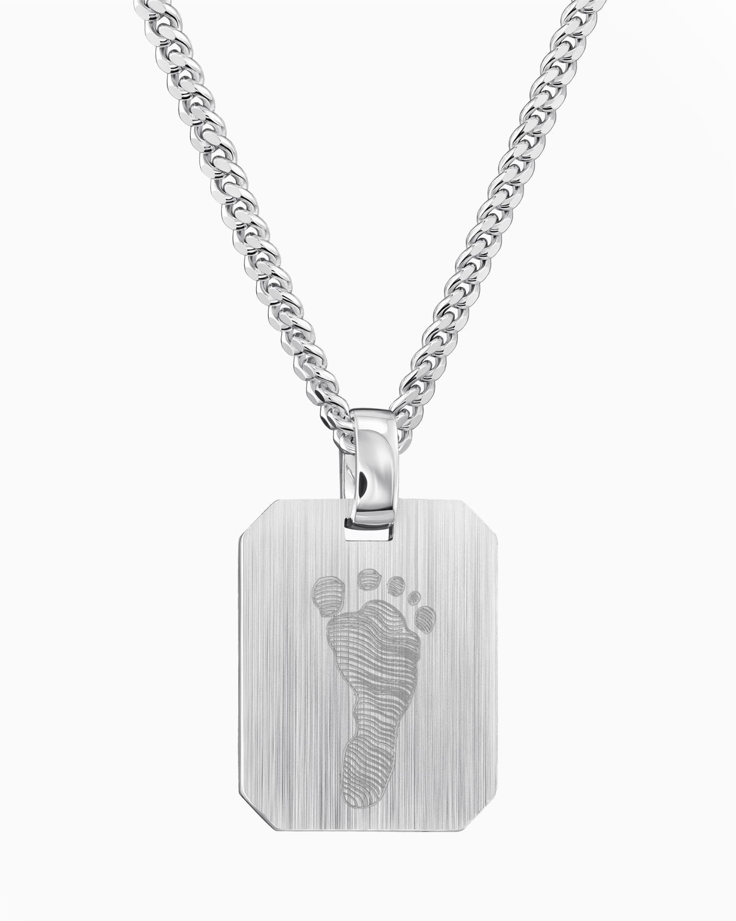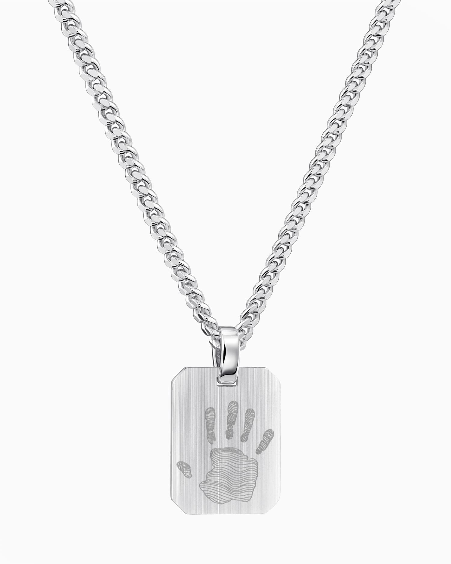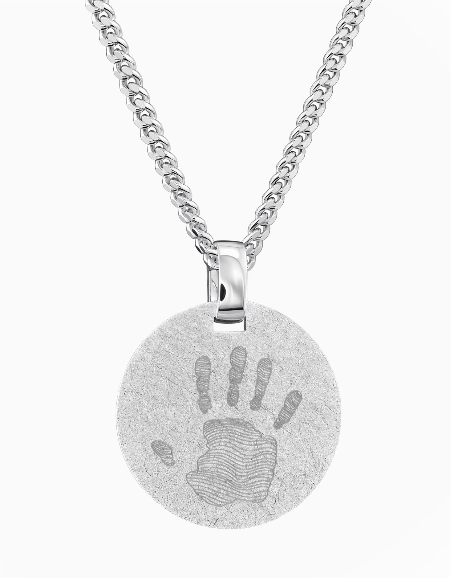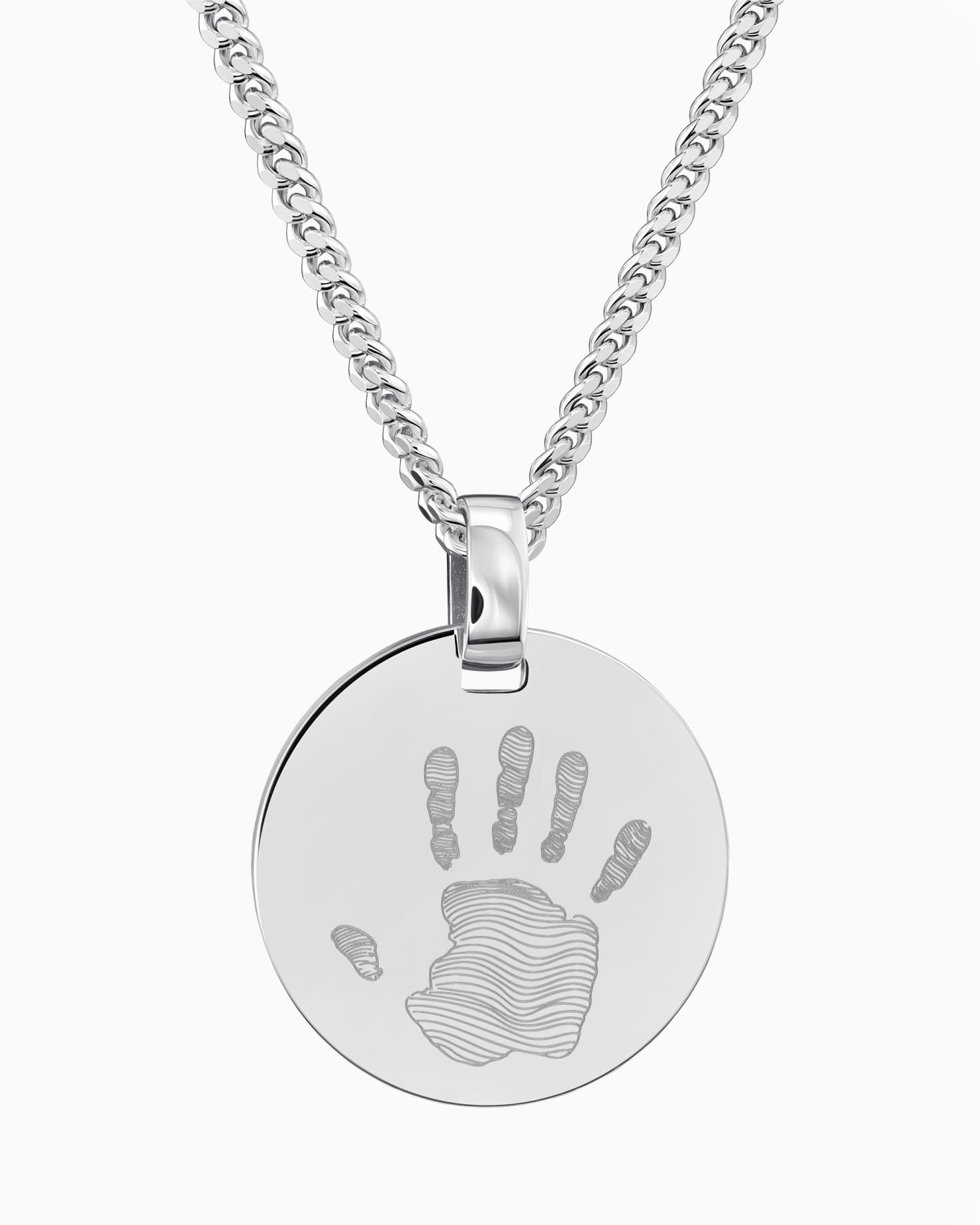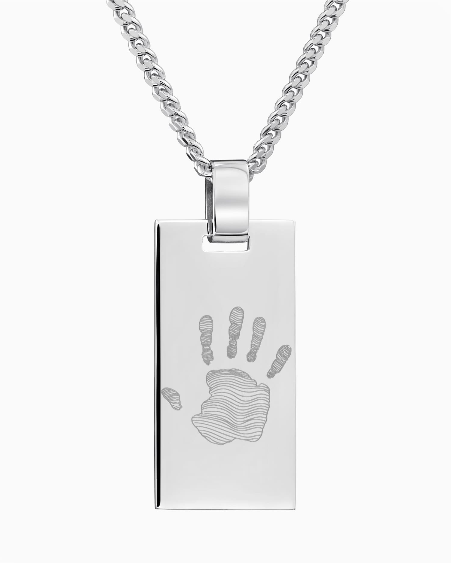 An engraved necklace is the ideal gift for special moments. Whether as a reminder of a loved one, a special event or simply as a symbol of solidarity - our men's fingerprint/footprint/handprint necklaces will accompany them for a lifetime.
