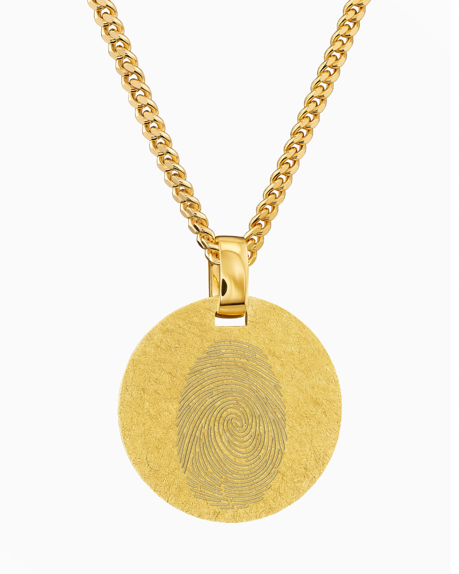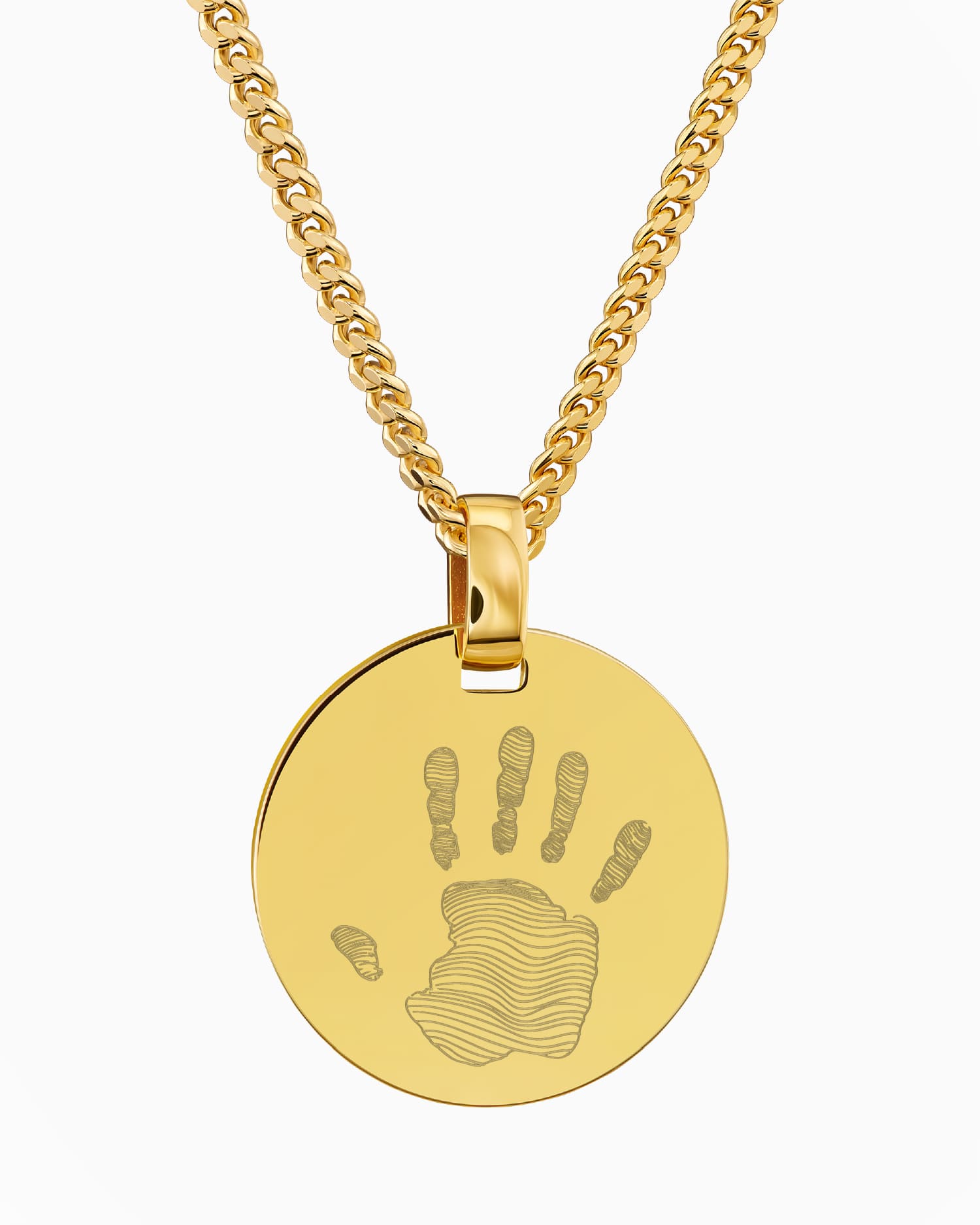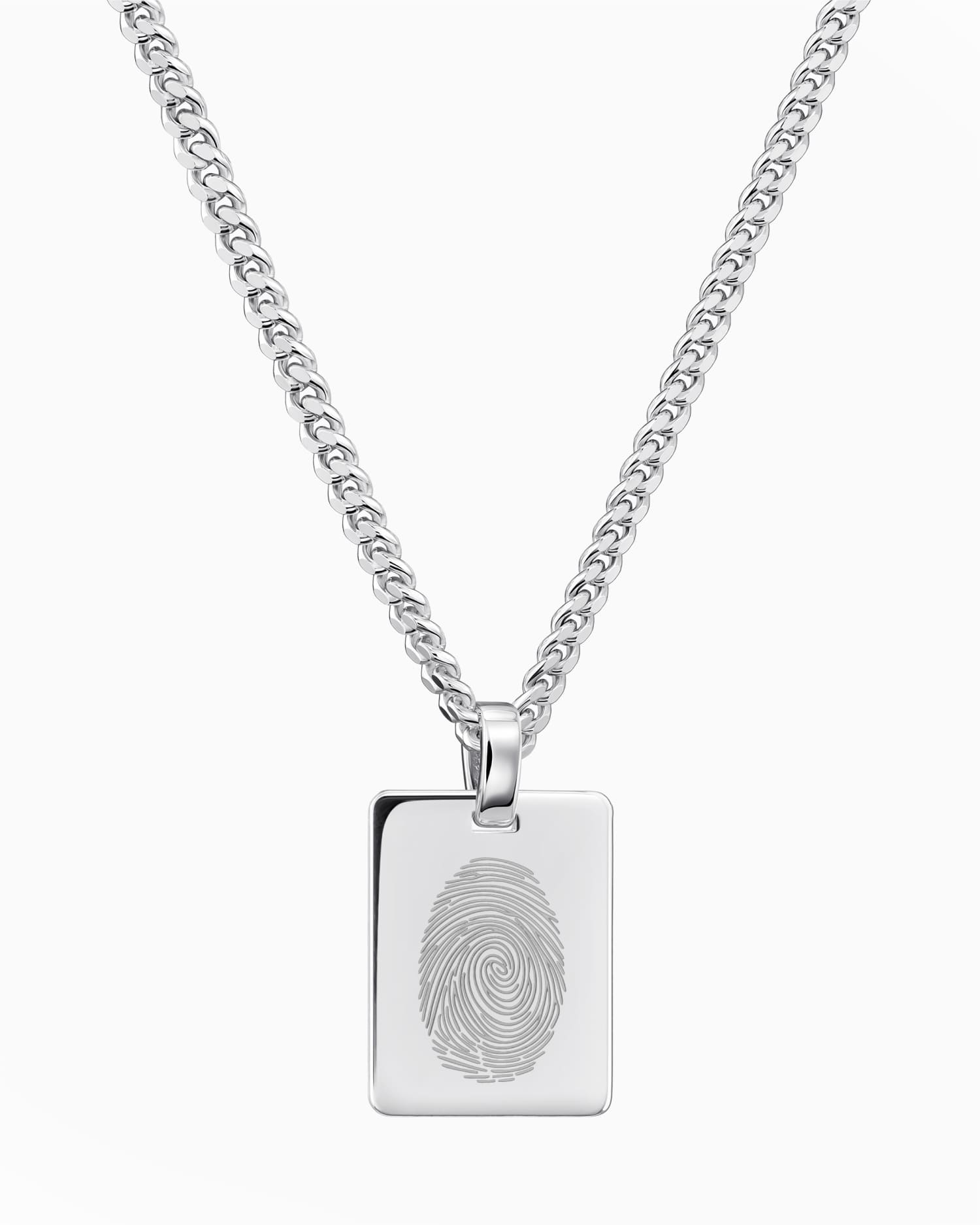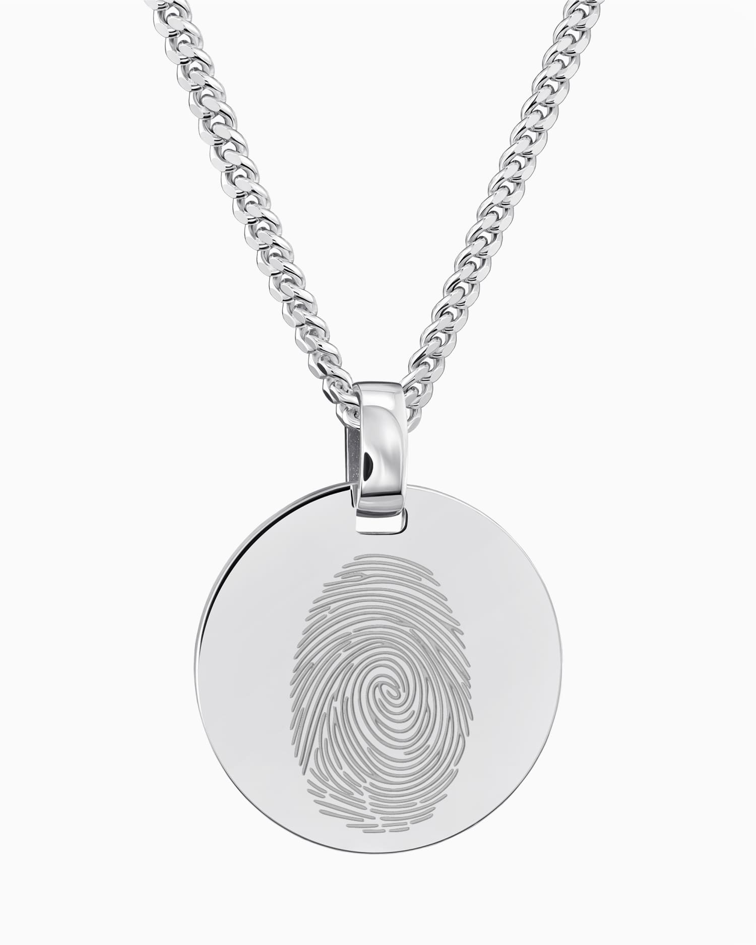 Create lasting memories with a fingerprint handprint footprint engraving. Whether an imprint of a loved one or pet - our engraved necklaces offer space for personal engravings. Choose between an engraving plate or personalized jewelry for men and design your individual piece of jewelry.