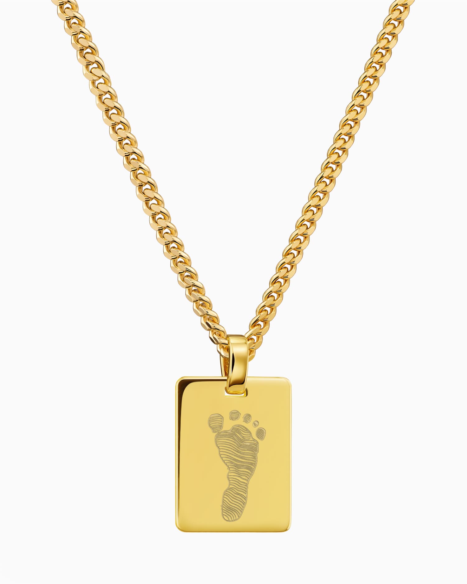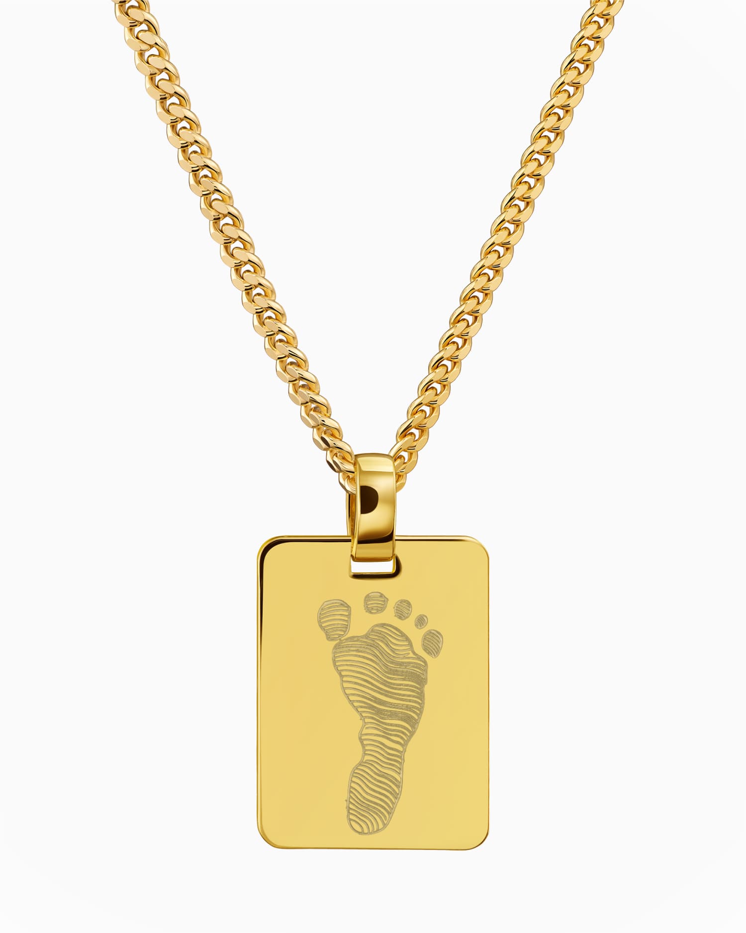 Our men's fingerprint/footprint/handprint necklace collection combines emotion and design. Whether as an engraved necklace, classic engraving plate or special personalized jewelry for men - each piece of jewelry carries a personal story. The fingerprint, handprint or footprint makes each piece a unique keepsake.