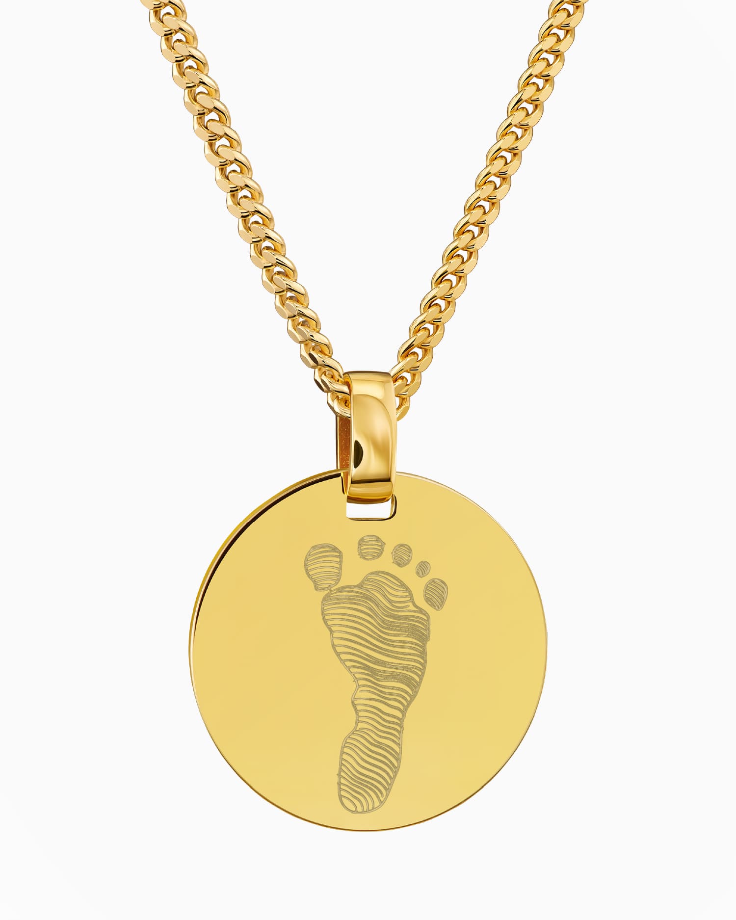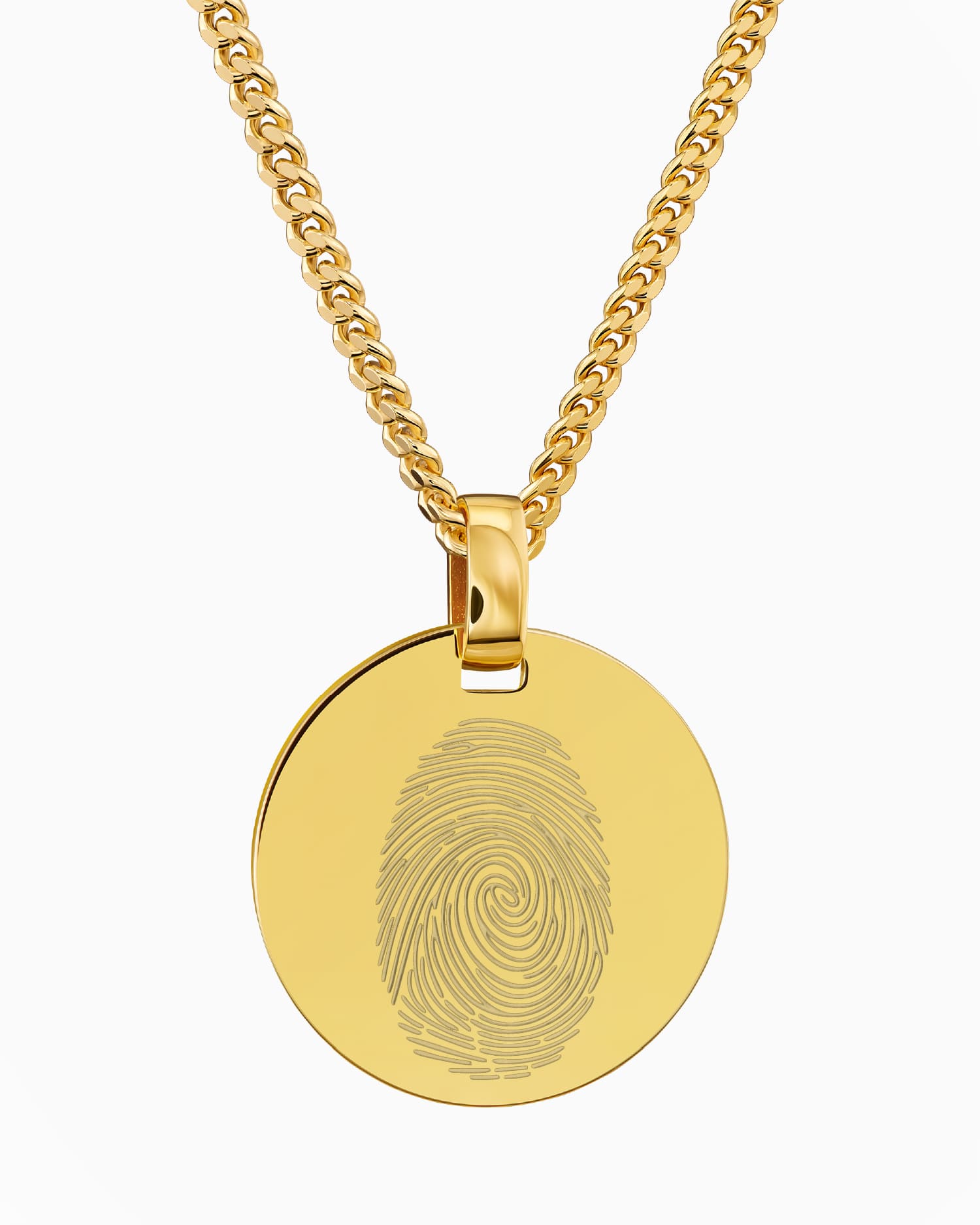 Our men's fingerprint/footprint/handprint necklaces are made from high-quality 925 silver or 333/585 gold. All pieces are tarnish-resistant and durable, ideal for everyday use or special occasions. Whether engraved necklace, engraving plate or personalized jewelry for men - quality comes first.