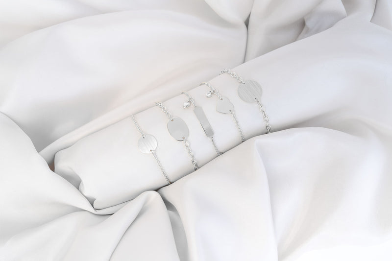 Discover our classic engraved bracelets for women - 925 silver rhodium-plated, which you can design with an engraved bracelet. Our precise engraving technique makes every piece of jewelry unique - whether names, initials or symbols. Each piece is crafted to the highest quality and will last a lifetime. These pieces of jewelry are available in various designs: engraved bracelet, bracelet with engraving, personalized bracelet or identity bracelet.