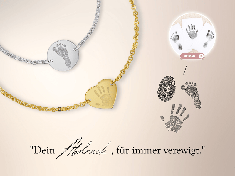 Baby/child engraving bracelets - fingerprint/footprint/handprint - 925 silver rhodium-plated are more than just accessories - they tell your story. Carry something very personal with you - fingerprints, baby feet or handprints as a loving keepsake. Make a statement with our high-quality materials and precise engravings. These pieces of jewelry are available in various designs: engraved bracelet, bracelet with engraving, personalized bracelet or identity bracelet.