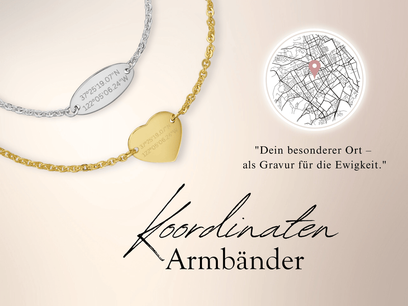 Our engraving bracelets for women - coordinates - 925 silver 18k gold-plated with engraving bracelet are perfect for anyone who wants to capture a special memory. Engrave the coordinates of a special place, e.g. the location of a first date, an unforgettable vacation or an important moment. An individual gift or a unique piece of jewelry for yourself. These pieces of jewelry are available in various designs: engraved bracelet, bracelet with engraving, personalized bracelet or identity bracelet.