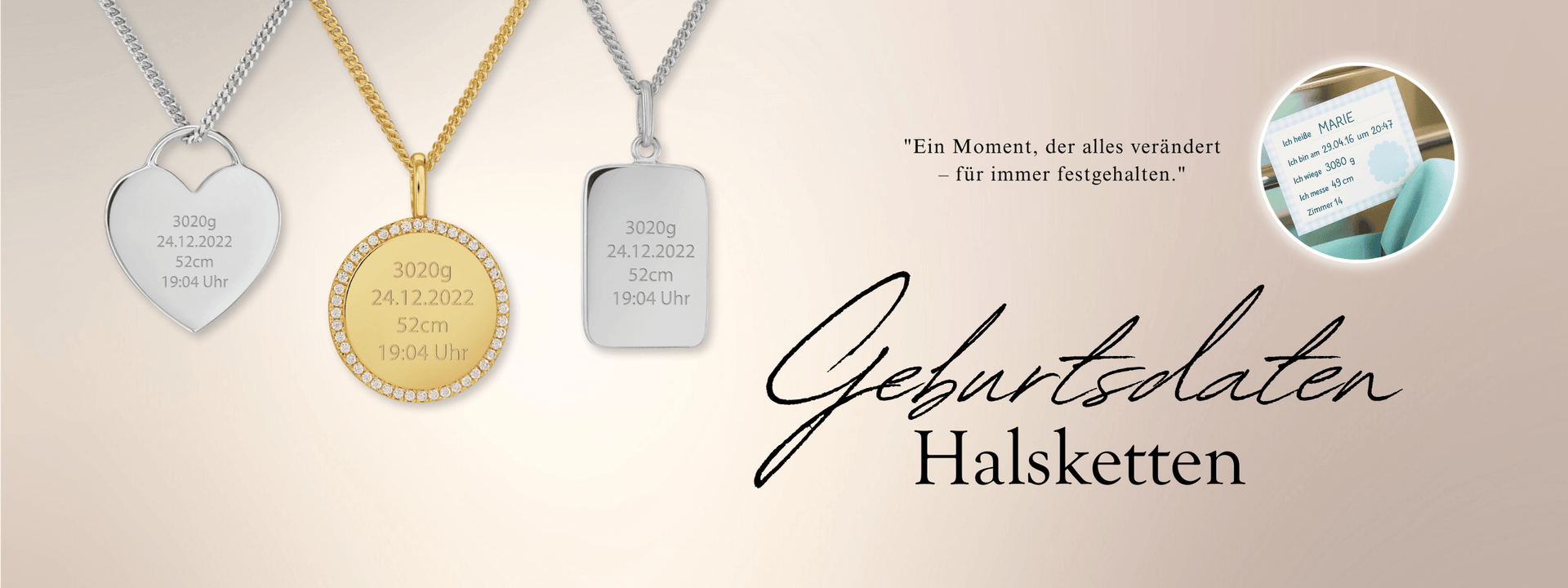 Gegraveerde halskettingen voor baby's/kinderen - geboortedata - 925 zilver 18 karaat verguld zijn meer dan alleen accessoires - ze vertellen je verhaal. Vereeuwig geboortedata zoals dag, tijd, gewicht en lengte op een sieraad als een speciaal aandenken. Maak een statement met onze hoogwaardige materialen en nauwkeurige gravures. Deze sieraden zijn verkrijgbaar in verschillende ontwerpen: gegraveerde halsketting, halsketting met gravure, graveerplaatje of gepersonaliseerde halsketting.