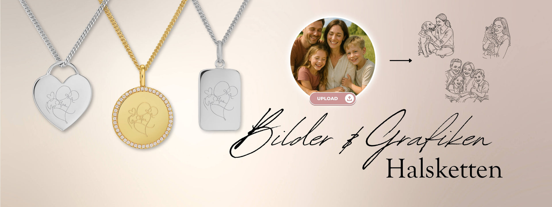 Gegraveerde kettingen voor dames – afbeeldingen & graphics – 333/585 goud zijn meer dan alleen accessoires – ze vertellen jouw verhaal. Onze precieze graveertechniek maakt elk sieraad uniek – of het nu gaat om namen, initialen of symbolen. Met onze hoogwaardige materialen en precieze gravures maak je een statement. Deze sieraden zijn verkrijgbaar in verschillende uitvoeringen: gegraveerde kettingen, kettingen met gravure, graveerplaatjes of gepersonaliseerde kettingen.