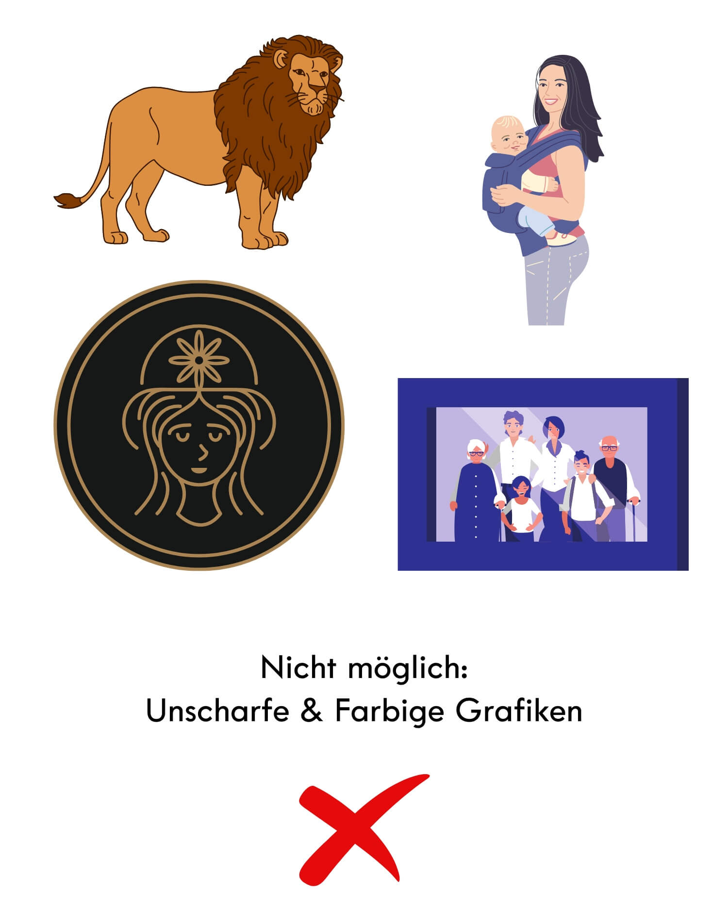 Upload gewoon de afbeelding of afgewerkte grafiek in je bestelling - wij doen de rest! Als de afbeelding niet perfect is, optimaliseren we deze digitaal voor het best mogelijke graveerresultaat.