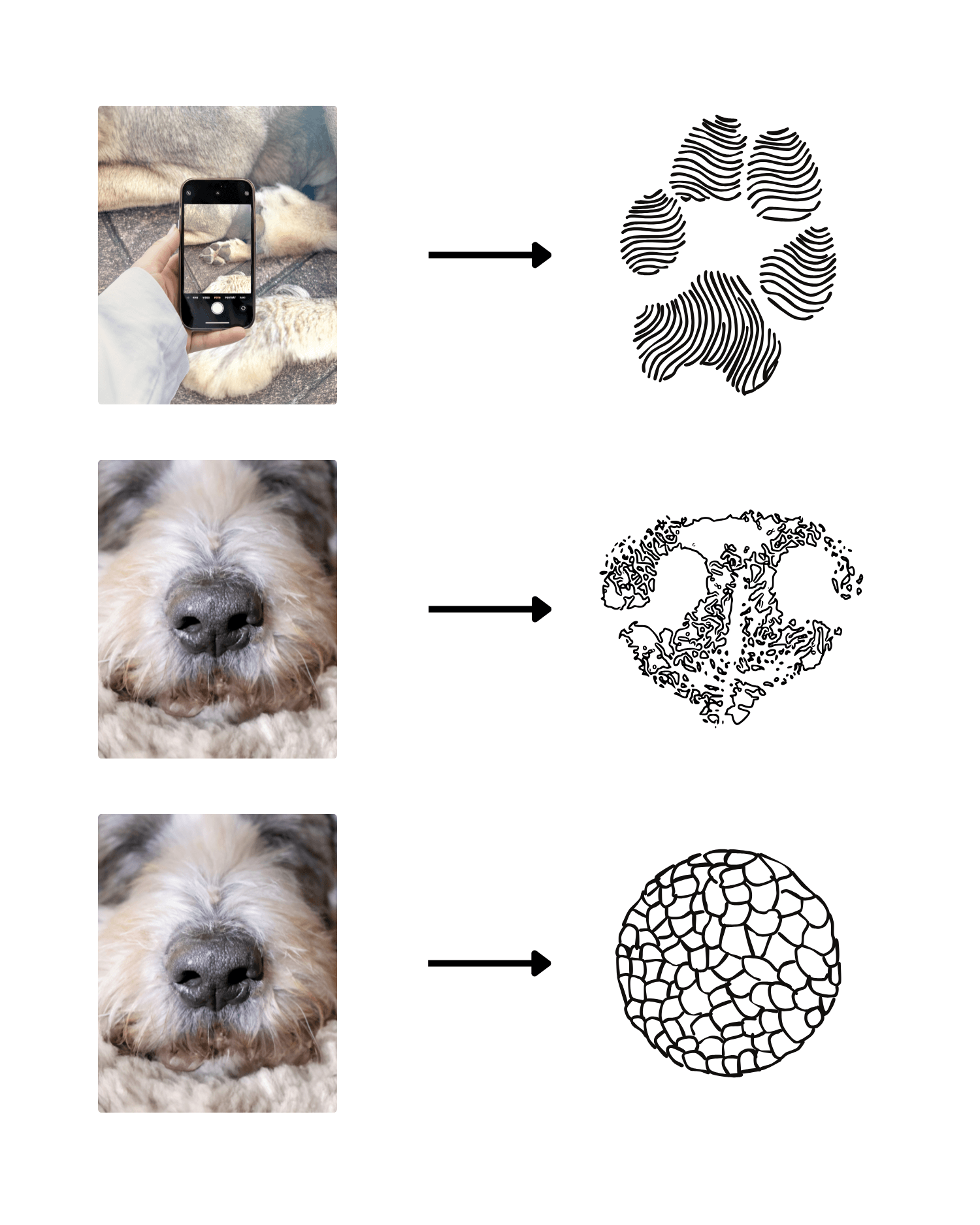 Mach ein scharfes, nahes Foto der Pfote oder Nase deines Tieres bei gutem Tageslicht – am besten direkt am Fenster oder draußen. Anschließend einfach bei deiner Bestellung hochladen.