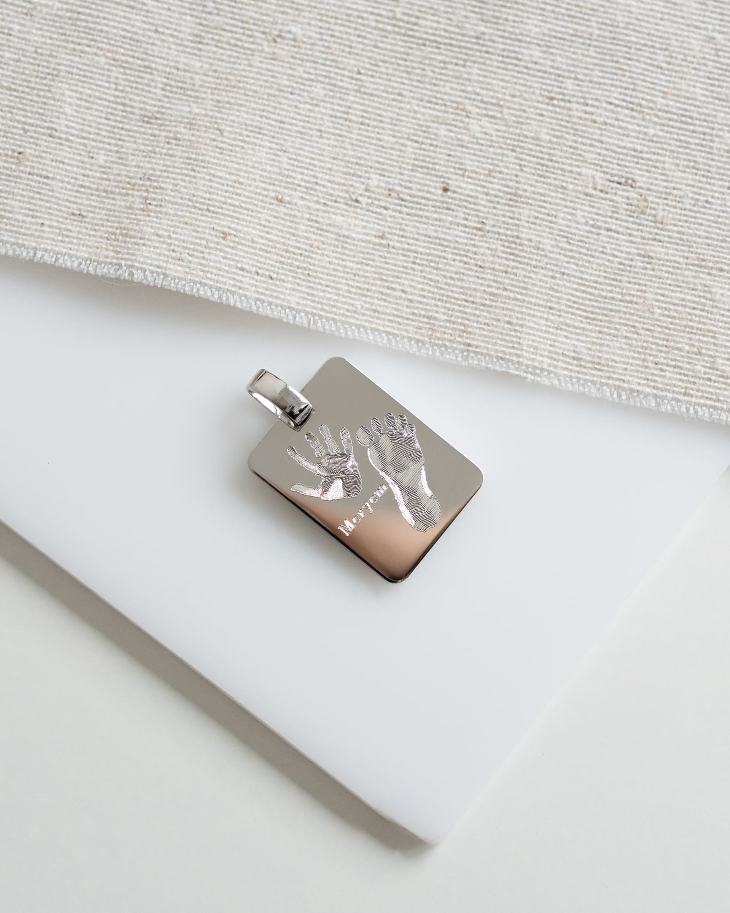 Fußabdruck Gravurplatte Halskette Anhänger Rechteck